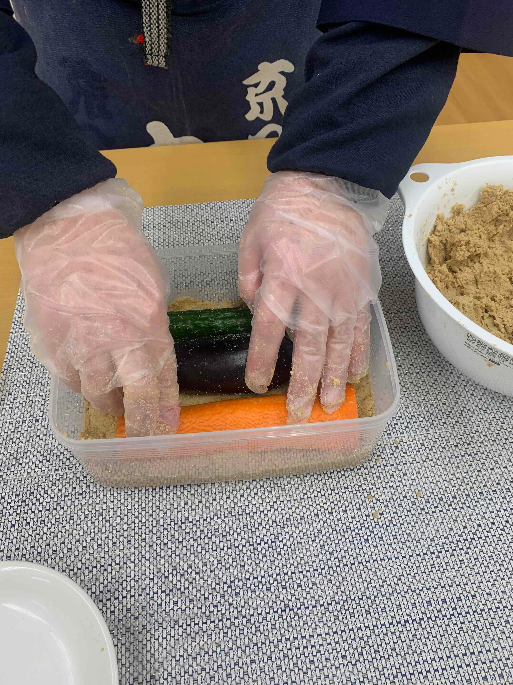 発酵させた米ぬかに野菜を漬けたものです。